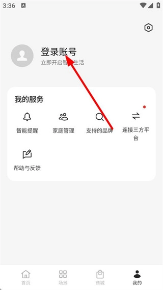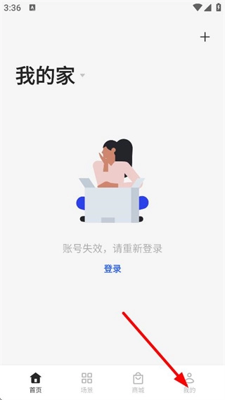 在我的家页面,点击底部我的,进入个人页面。