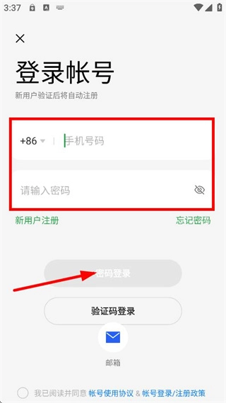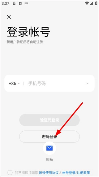 在登录账号页面,选择密码登录选项,即可切换至密码登录界面。