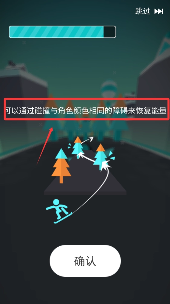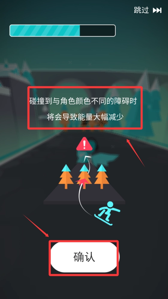 根据提示,当撞到与角色颜色不同的物体时能量会减少,然后点击下方的确定按钮。