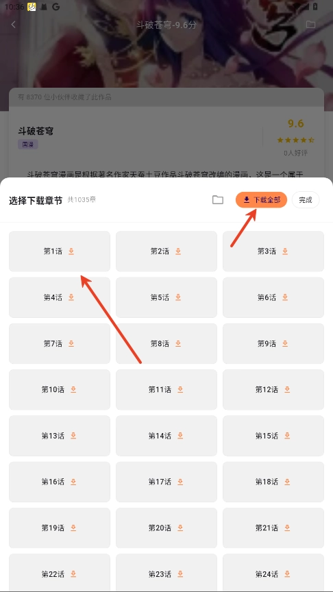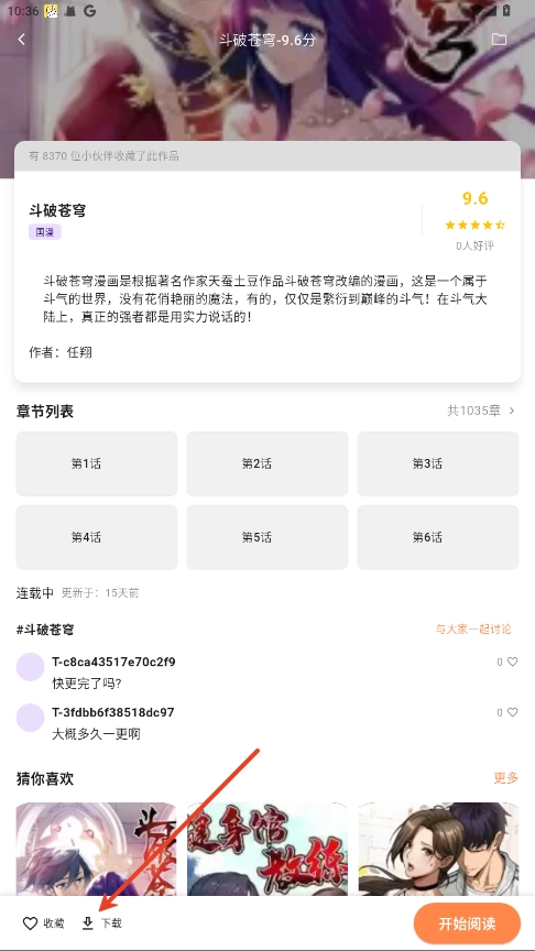 1、在本站下载安装喵呜漫画,打开软件,任意选择一部漫画,点击下方箭头所指的下载按钮