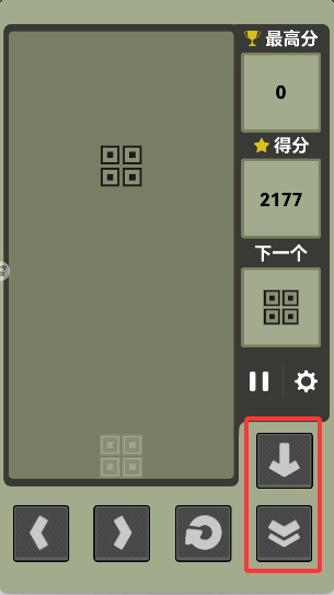 右下角的按钮可以加速方块的下落。