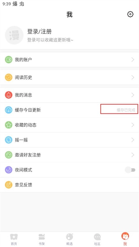 4、收藏完成之后来到我的界面,点击缓存今日更新