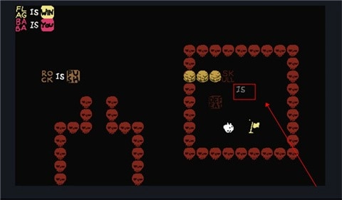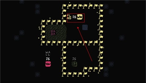 2、这时候我们操控的不再是baba,而是可以控制墙壁,向下滑动让墙壁触碰旗子。