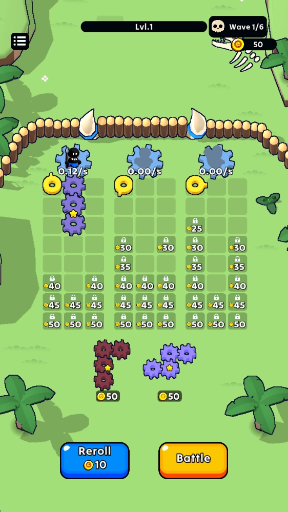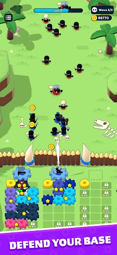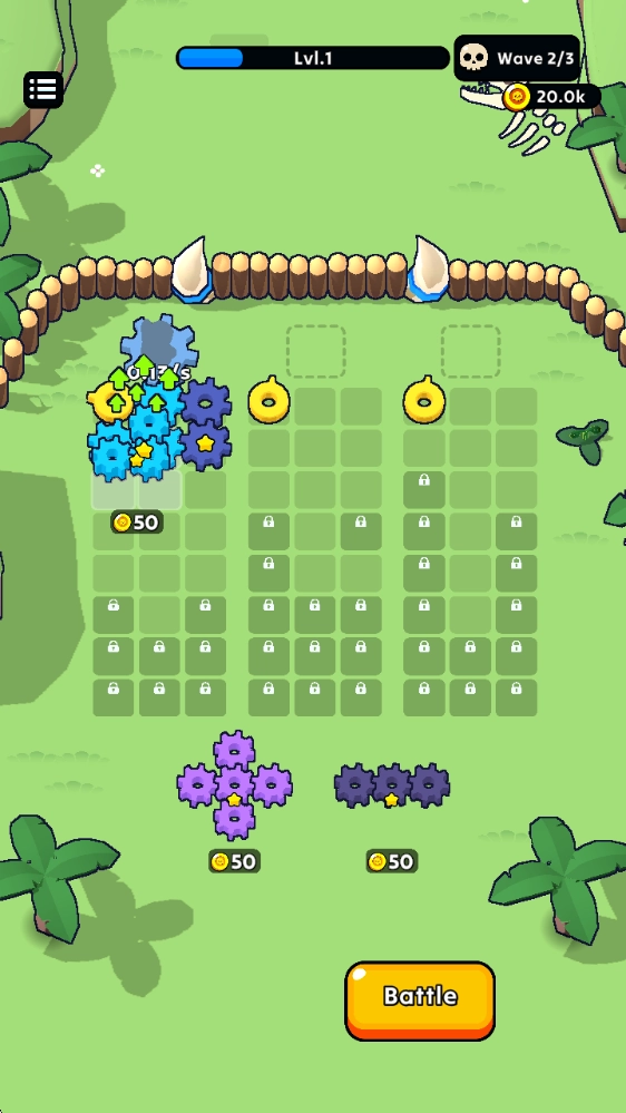 1、放置不同形状的齿轮来布置阵容,防御游戏塔防作战