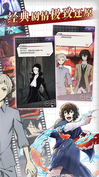 在「主线故事」板块,你能重温《文豪Stray Dogs》的经典剧情!尽情沉浸在那些令人难忘的名场面与角色互动之中吧!而「活动故事」里,不仅有专属的原创情节,还能补全动画未展开的支线故事,带来全新的体验!