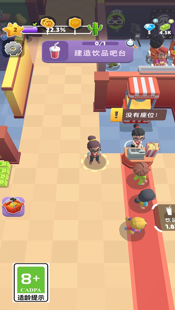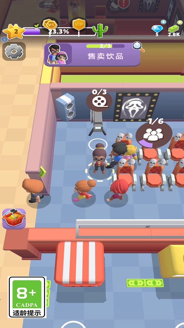 1、这是一款超休闲的电影院模拟经营游戏,玩家能够开设一间间剧场。