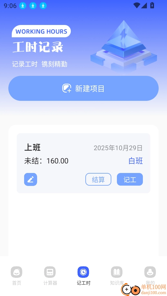 在软件首页底部的菜单栏里,点击“记工时”按钮,即可开展下一步操作。