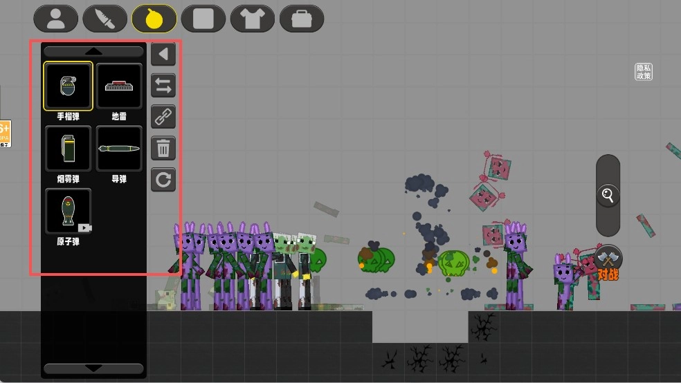 点击界面上方的炸弹图标,可以选择「手榴弹」等武器道具,对感染体造成范围伤害,在关键时刻快速清理敌人。