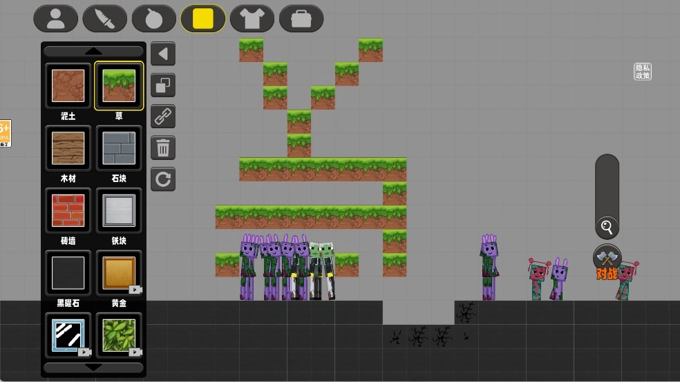 通过上方方块栏选择「草地」等地形元素,自由搭建地形屏障,阻挡感染体行动,辅助完善防御布局。