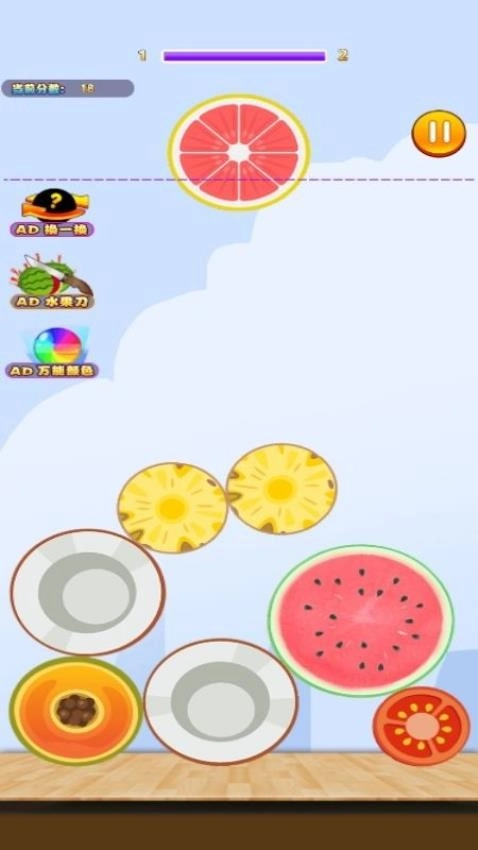 控制掉落水果的位置,把相同的水果合并成更高级的水果。