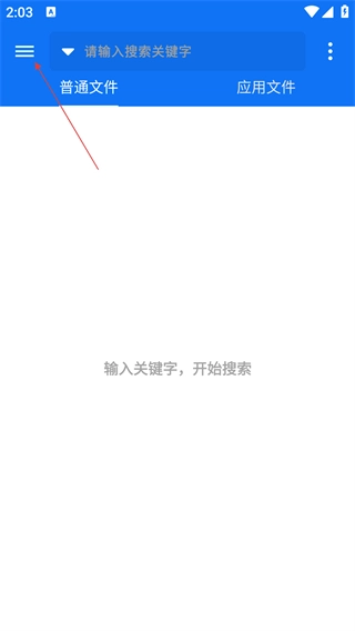 在首页中,点击左上角的菜单按钮,展开功能列表。