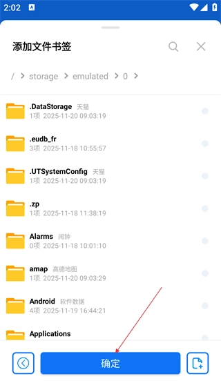在文件书签页面,点击顶部的添加图标,即可打开文件选择的路径界面。