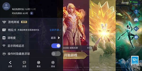 这里能开通无限游戏时长,还可以调节云游戏的清晰度,另外也有关闭网络延迟之类的设置。