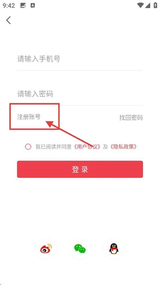 在登录界面点击【注册账号】选项,就能跳转到账号注册页面。