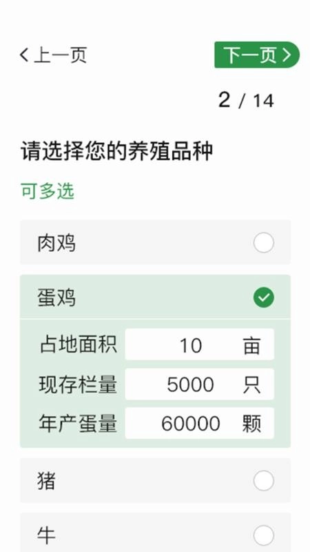 对农场牲畜的养殖品种开展在线记录工作,通过选定养殖品种类型,来对农场的养殖情况实施记录与管理。