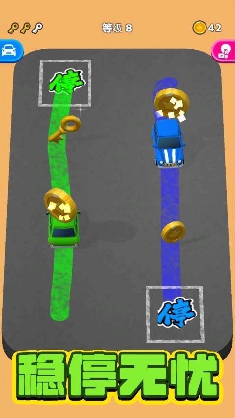 「赛车大闯关」是一款兼具速度感与策略性的竞速游戏。玩家操控车辆在关键的停车线之间穿梭,这不仅是一场速度的比拼,合理的路线规划、精准的时间把控以及敏捷的反应能力,都是玩家需要具备的核心技能。