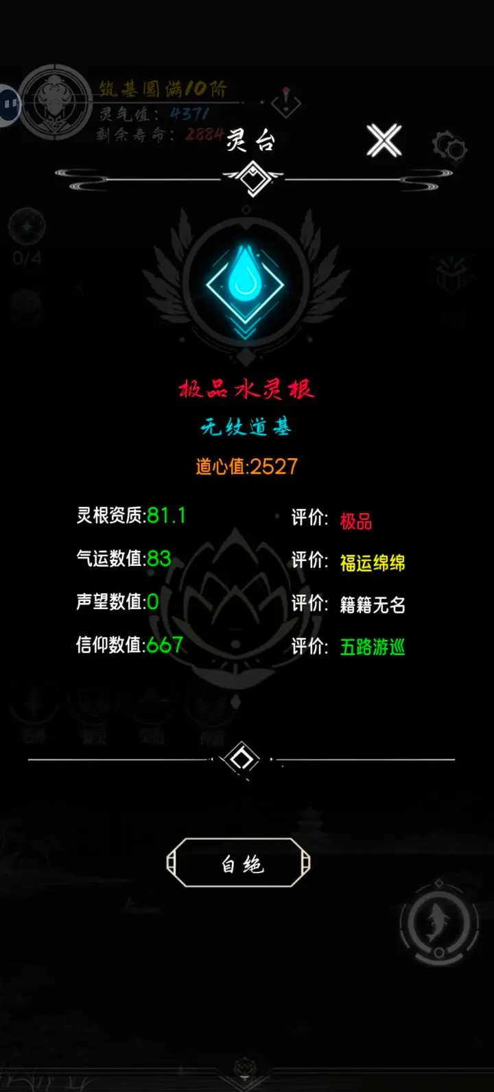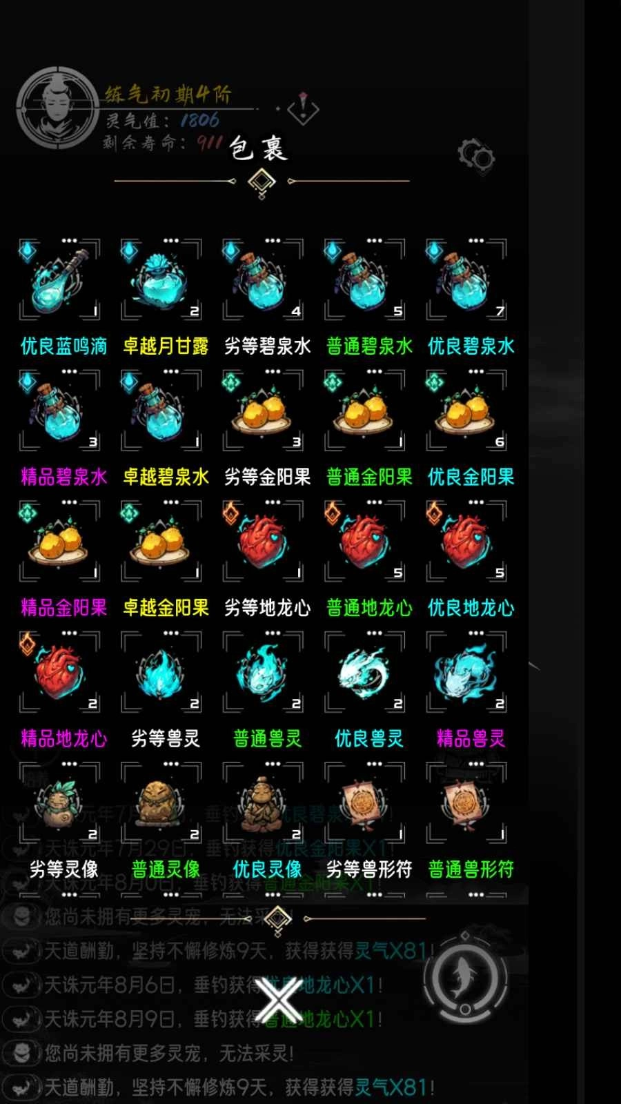 刷新灵根品质能有效延长寿命,刷新气运品质则可显著提升钓鱼收获与神游收获。