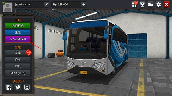 首先打开印尼巴士模拟器中文版,选择多人游戏模式;