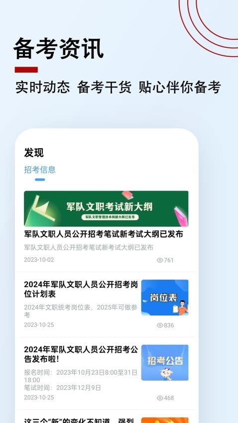 我们会及时更新并推送各类军队文职的招考信息,帮助大家第一时间掌握最新的招考动态。