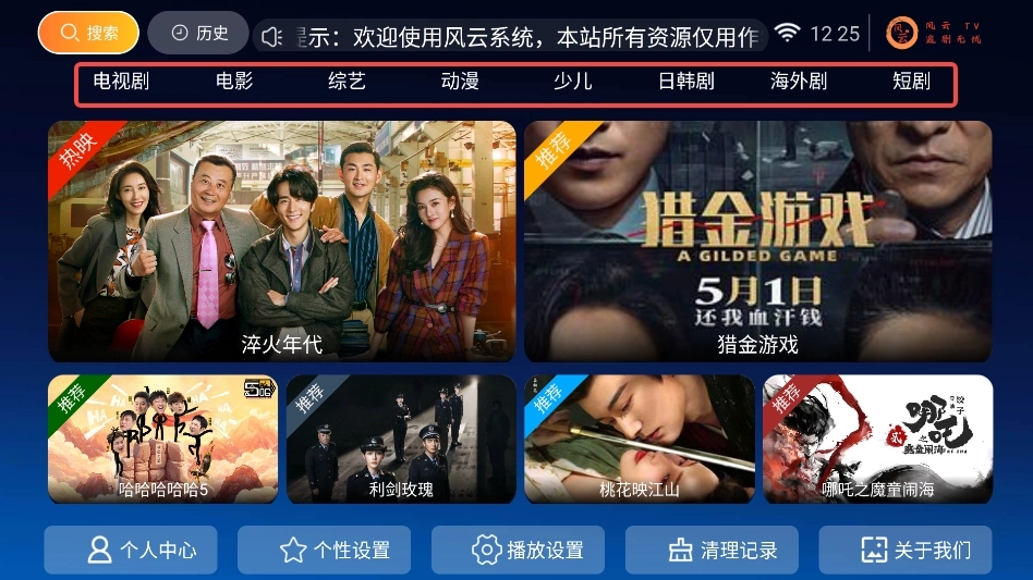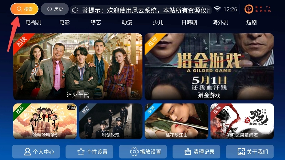 1.启动风云TV应用,进入首页后,系统会为您推荐当下热门的影视内容