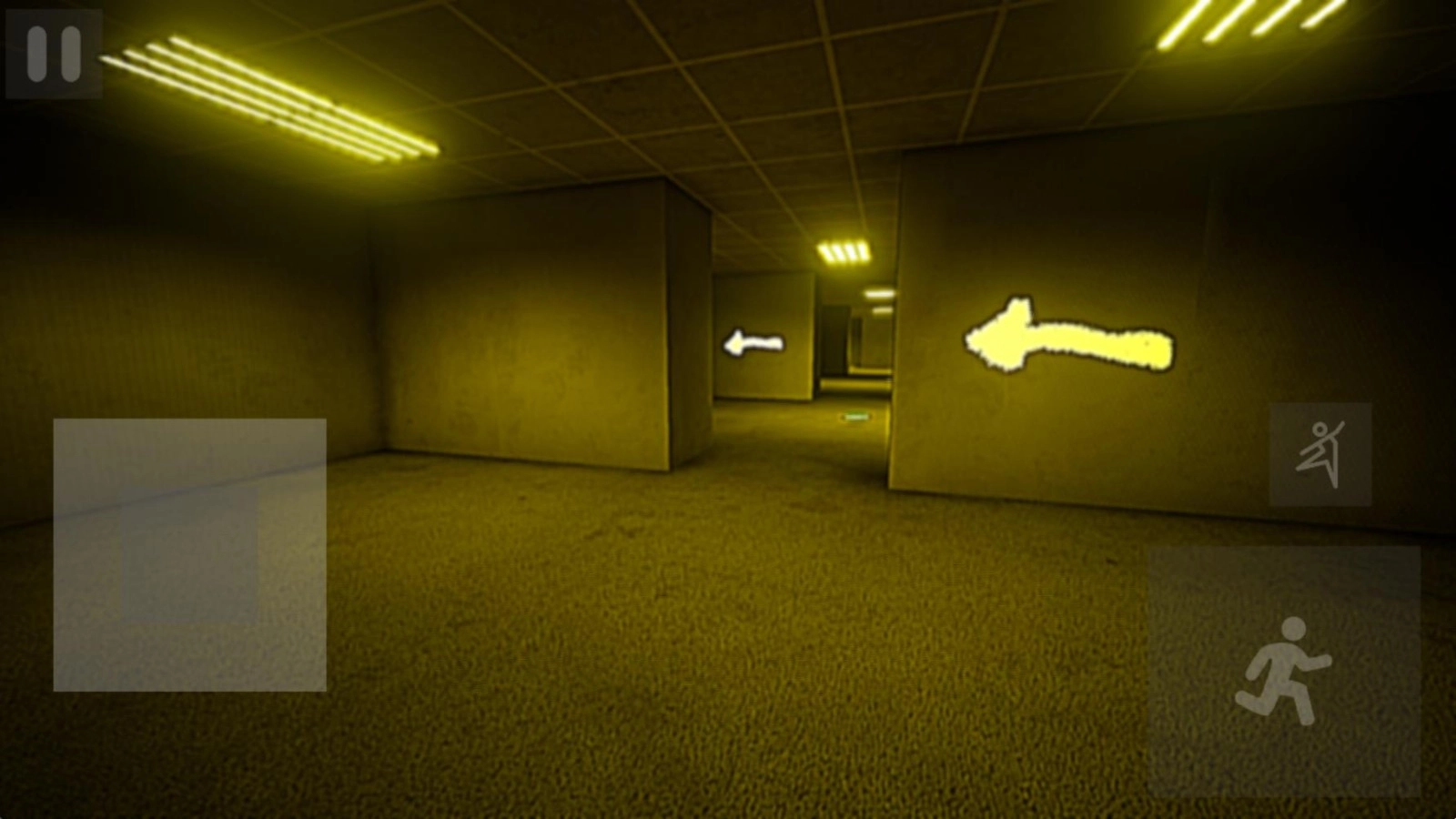 3、左侧控制角色移动,右侧负责奔跑与跳跃,碰到带有白色标记的物品时能够开展互动操作。