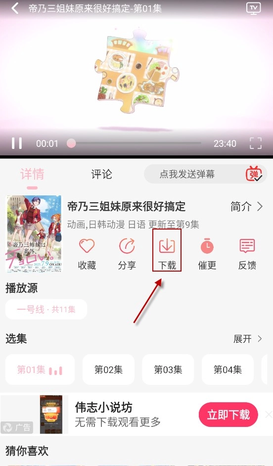 3、点击进入想要观看的动漫,然后点击“”按钮。