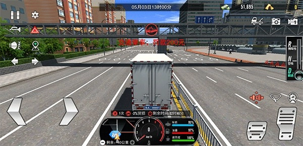 5、运输过程中,玩家需借助下方地图导航前往运输终点,途中务必系好安全带(安全带为刹车上方的红色图标),同时要遵守交通规则,避免撞车等情况发生;否则不仅会被罚款,还会导致货物损坏。