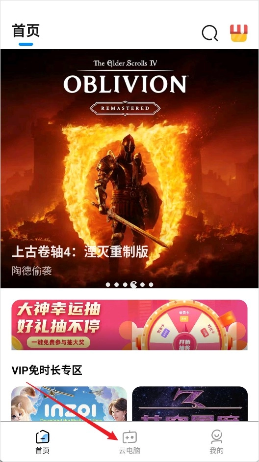 1、打开大神云电脑App,点击下方的云电脑
