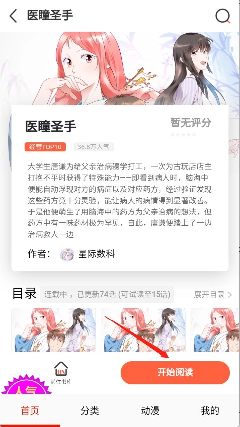 4、点开想看的漫画进入到详情页,点击“开始阅读”