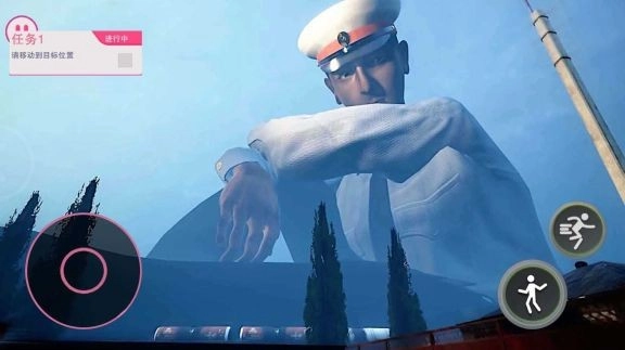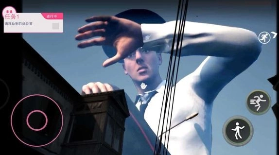 3、借助虚拟摇杆操控角色移动,通过靠近墙体、建筑阴影或物体后方来躲避视线