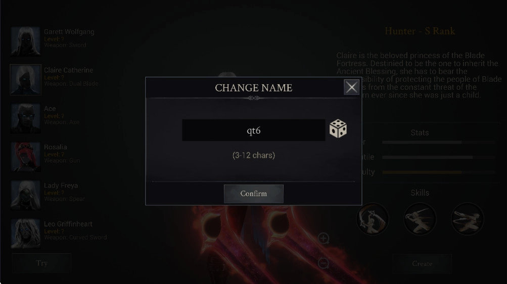 1.打开恶魔猎手暗影世界游戏,点击屏幕开始,选择一个喜欢的角色;