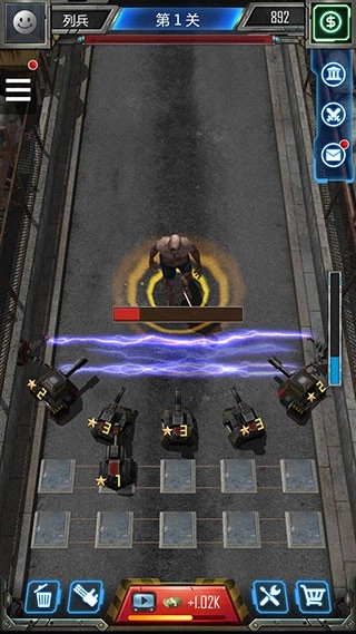 4、炮塔会自动攻击,上方进度条满后可以点击拂晓行动开启boss战。