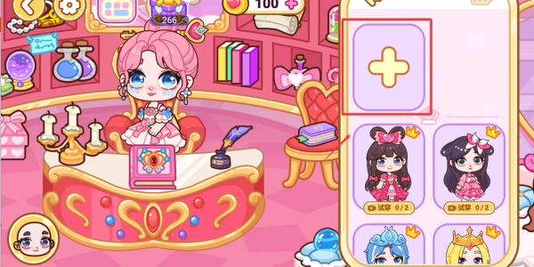 3、接着看到右侧有个加号,点击该加号就能进入角色装扮界面