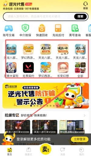 首先在逆光代售平台完成注册与登录,进入首页后,各类游戏商品分类清晰呈现,你可以依据自身需求浏览商品,或者直接搜索心仪的游戏账号及道具。