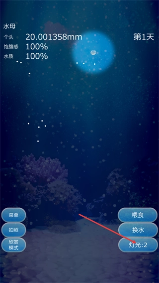点击右侧的灯光按钮,能够调节养殖环境的灯光效果,目前灯光等级已提升至2级,适宜的灯光对营造水母舒适的生存环境很有帮助。