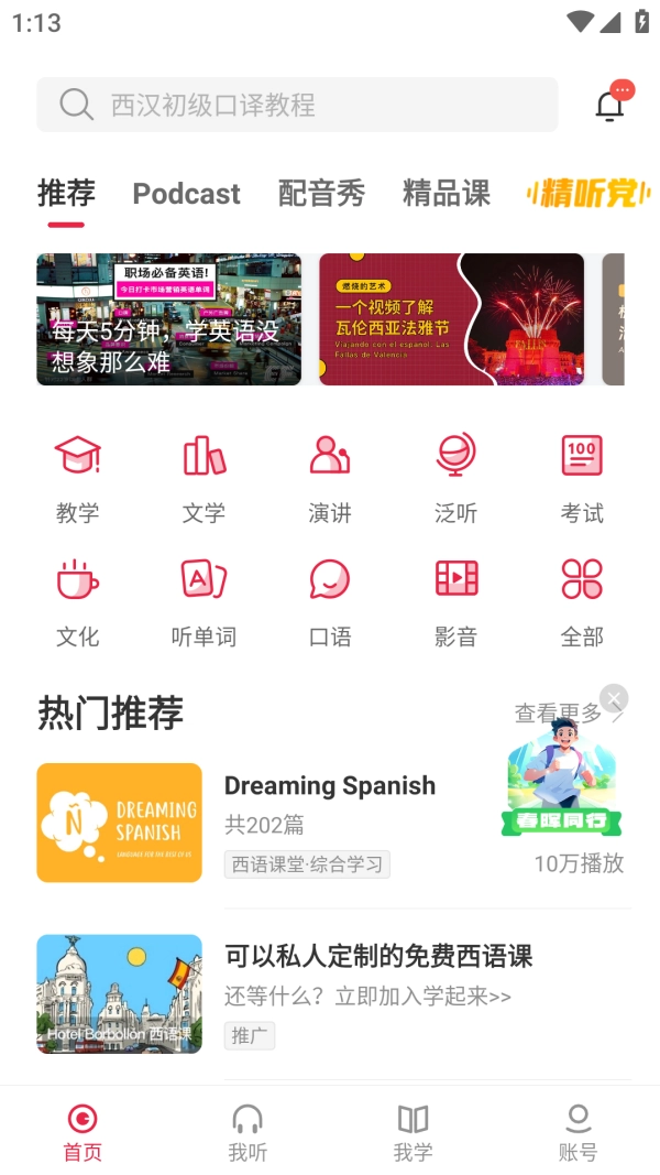 每日西语听力绝对是一款值得推荐的西班牙语学习平台,它的内容资源相当丰富。在这里,你既能练习口语,也能学习西语相关知识;还有不少西语学习大神会分享实用的学习技巧。平台提供西语演讲、考试、测试等多种学习形式,让你利用闲暇时间就能轻松学习西班牙语,真的不容错过。