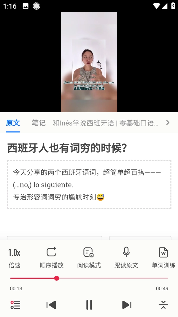 在收听过程中,若遇到生词,长按对应的单词就能将其添加至生词笔记中。