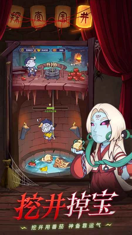 玩家将化身一名小道士,消耗番茄使铃铛晃动,驱动小僵尸从水井中打捞装备。玩家可依据新装备的品质,选择保留原有装备或更换新装备。游戏全程需通过这种方式持续获取新装备,以提升角色的各项数值。当角色等级达到特定要求后,即可开启关卡挑战。