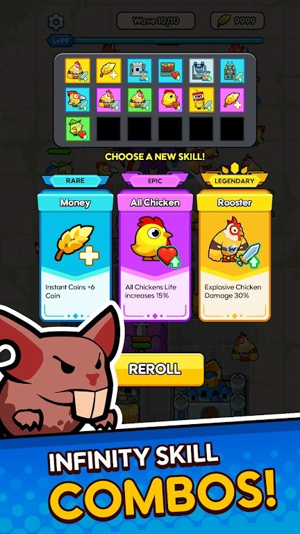 3、收集并进化以你行,解锁十几只不同的可爱的鸡英雄,拥有特殊的力量。
