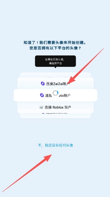 3、从以下平台中选择创建自己的人物头像,如果没有使用过这些平台,可选择不,我还没有任何头像。