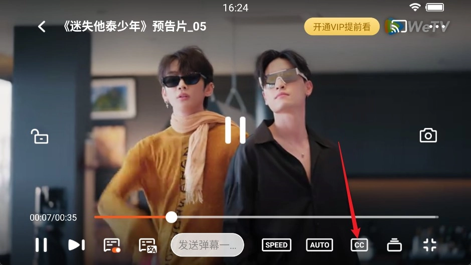 1、在视频播放界面点击下方的CC