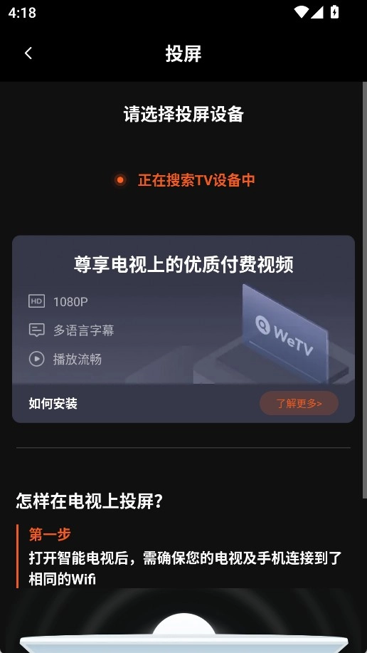3、要投屏的话,得先确认手机和电视连的是同一个Wi-Fi网络,然后选好要投屏的目标设备就能开始了。