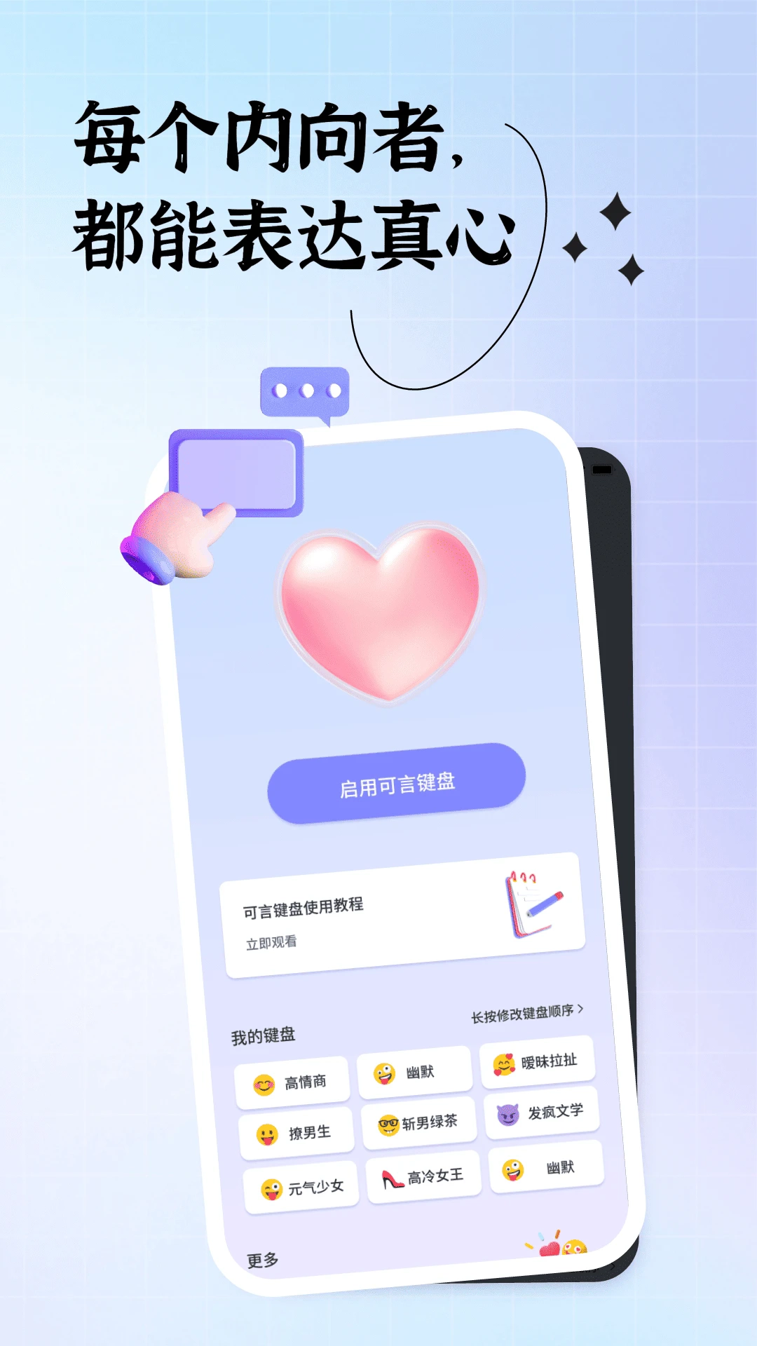 可言键盘最新版是一款让人眼前一亮的手机输入法应用。你可以根据自己的使用习惯选择合适的输入方式进行文字拼写,无论是手写输入还是笔画输入,系统都能智能匹配相关图片,服务十分可靠。软件了丰富的搞怪表情包,聊天时可以直接调用,让沟通更加轻松有趣。此外,它还提供多种输入方式供你选择,能帮你记录重要日期并设置提醒,使用起来非常便捷。除了基础功能外,可言键盘还具备文案创作等实用功能,整体功能十分强大。如果你对此感兴趣,不妨来本站下载体验一番!