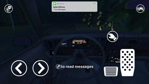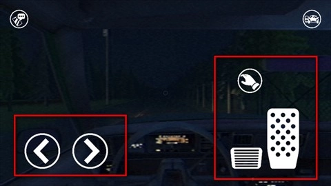进入游戏后,呈现的是车内界面,左右两侧分别对应方向、刹车和油门功能。