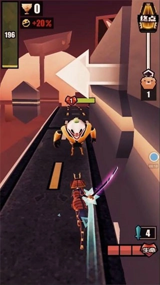 玩家需在高速移动中完成跳跃、滑铲、腾空斩等动作躲避障碍,同时通过武器连击、技能释放(如闪电链、火焰刀)击杀敌人。支持多赛道切换与武器替换机制,例如平底锅、武士刀等数十种武器可自由搭配,满足策略深度需求。