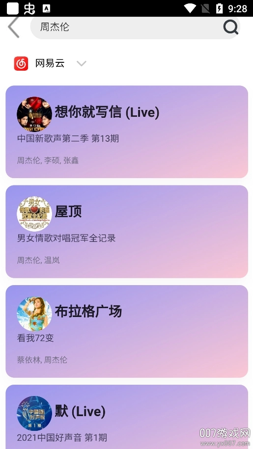 如图所示,一键搜索所需的音乐,进入播放页面。