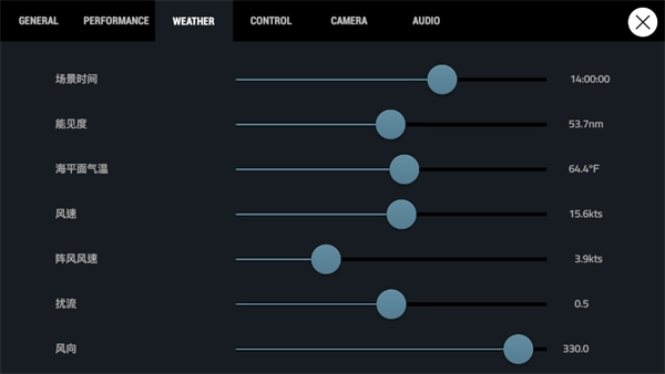 关于天气方面的设置,航母降落时适宜的风向为330,而机场降落时适宜的风向则是30。