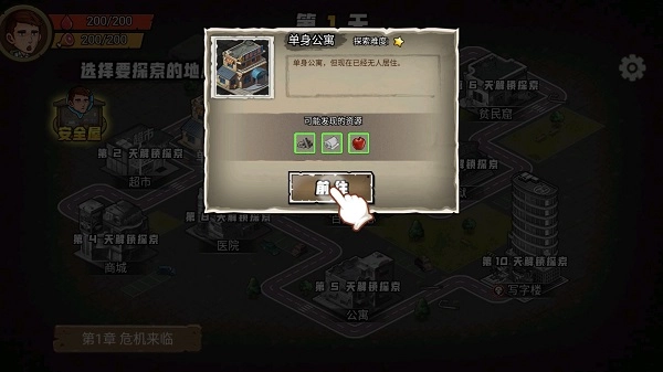 接下来挑选一个探索的地方,刚接触的玩家建议跟着指引去单身公寓区域开展初次探索。