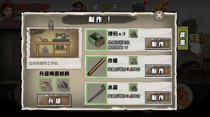 生存至上原则不变,合理利用材料与武器应对各种危机。