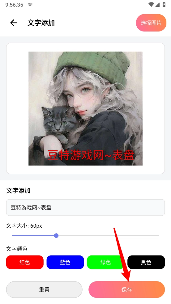 最后输入文字,选择文字颜色,点击"保存"即可。